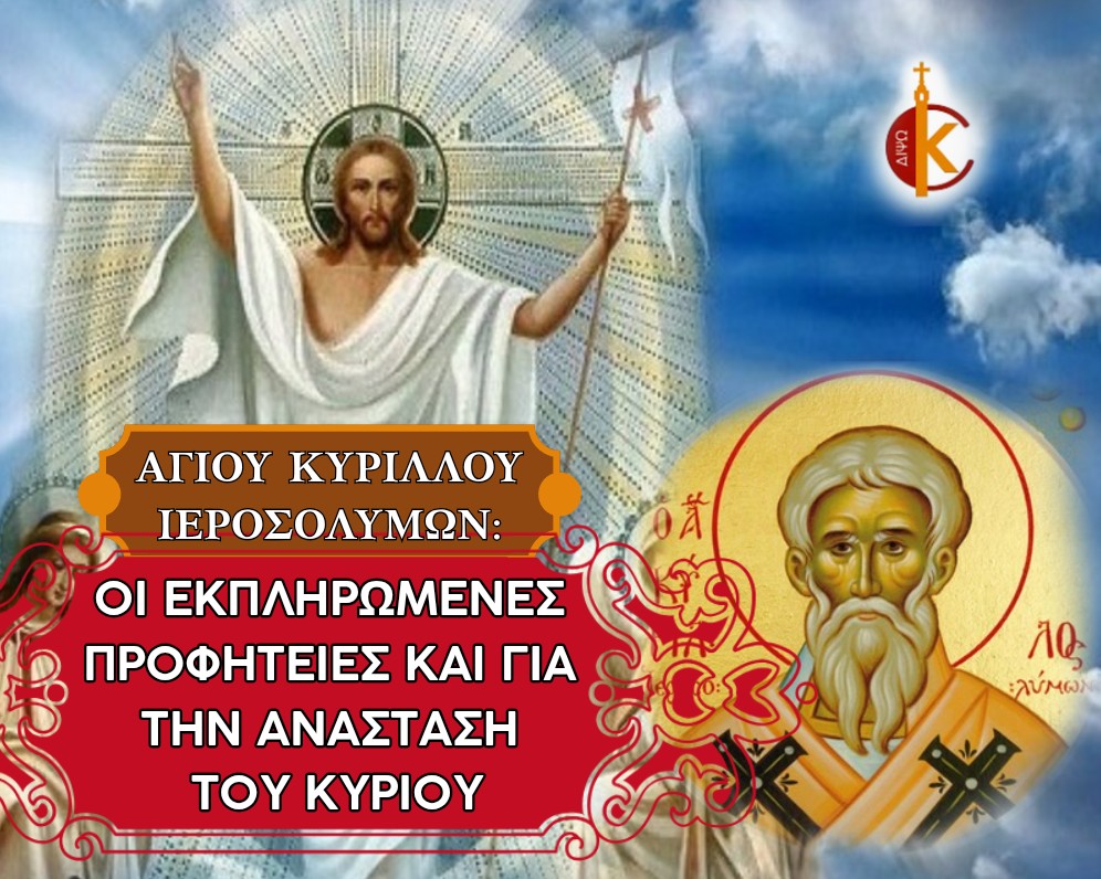 ΑΓΙΟΥ ΚΥΡΙΛΛΟΥ ΙΕΡΟΣΟΛΥΜΩΝ: ΟΙ ΕΚΠΛΗΡΩΜΕΝΕΣ ΠΡΟΦΗΤΕΙΕΣ ΚΑΙ ΓΙΑ ΤΗΝ ΑΝΑΣΤΑΣΗ ΤΟΥ ΚΥΡΙΟΥ