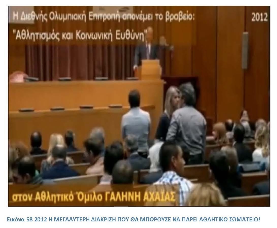 Βράβευση από την ΔΙΕΘΝΗ ΟΛΥΜΠΙΑΚΗ ΕΠΙΤΡΟΠΗ του ΑΘΛΗΤΙΚΟΥ ΟΜΙΛΟΥ “Α.Ο. ΓΑΛΗΝΗ” με το ειδικό βραβείο “Αθλητισμός και Κοινωνική Ευθύνη”.