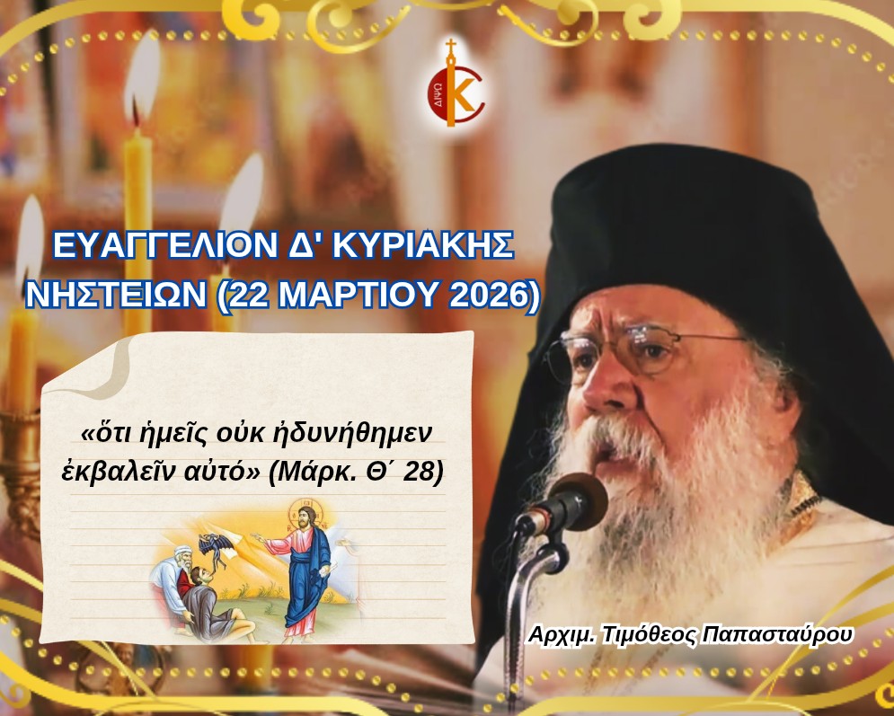 ΕΥΑΓΓΕΛΙΟΝ ΤΕΤΑΡΤΗΣ ΚΥΡΙΑΚΗΣ ΝΗΣΤΕΙΩΝ (22 ΜΑΡΤΙΟΥ 2026)«ὅτι ἡμεῖς οὐκ ἠδυνήθημεν ἐκβαλεῖν αὐτό»(Μάρκ. Θ΄ 28) Ἡ ἀνθρωπίνη …[…]