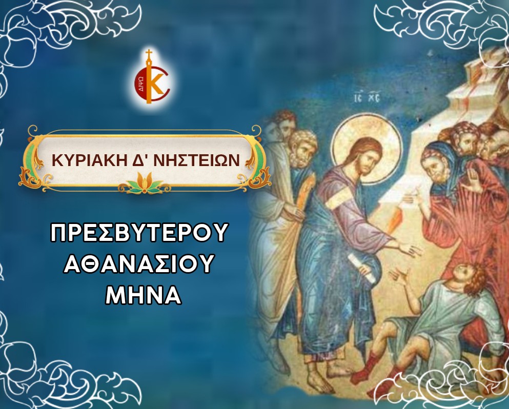 ΚΥΡΙΑΚΗ Δ’ ΝΗΣΤΕΙΩΝ ΠΡΕΣΒΥΤΕΡΟΥ ΑΘΑΝΑΣΙΟΥ ΜΗΝΑ «…ὁ δέ εἶπε· παιδιόθεν. καί πολλάκις αὐτόν καί εἰς πῦρ ἔβαλε καί[…]