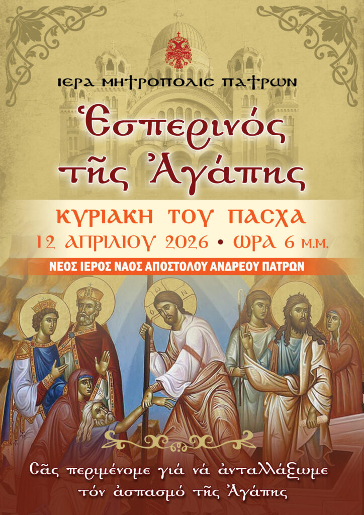 ΕΣΠΕΡΙΝΟΣ ΤΗΣ ΑΓΑΠΗΣ 2026-ΙΕΡΑ ΜΗΤΡΟΠΟΛΙΣ ΠΑΤΡΩΝ ΣΤΟΝ ΝΕΟ ΙΕΡΟ ΝΑΟ ΑΓΙΟΥ ΑΝΔΡΕΟΥ ΠΑΤΡΩΝ