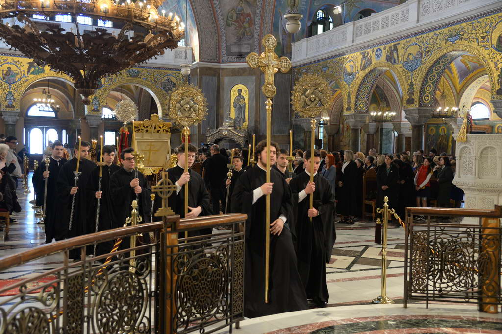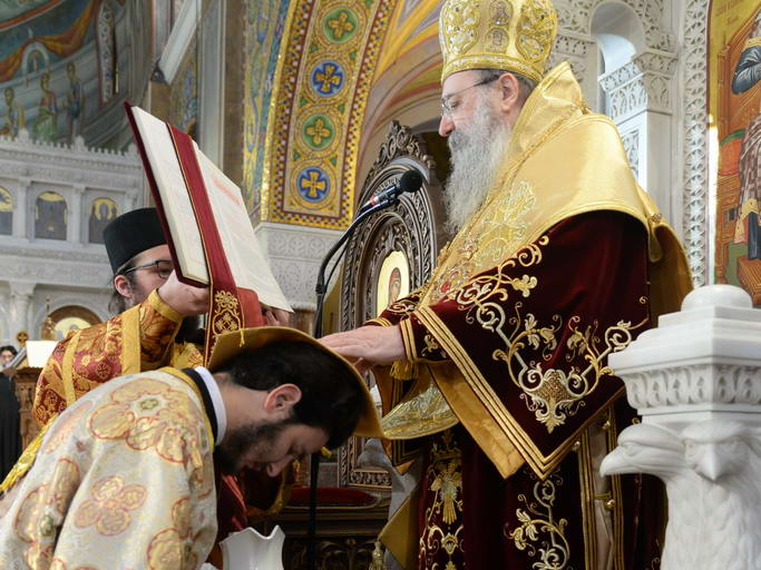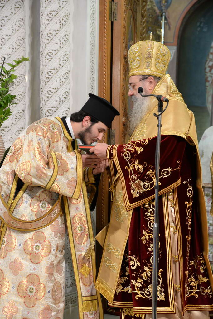 Ἐκάλεσε δὲ τὸν χειροτονηθέντα Διάκονο νὰ μιμηθῇ τοὺς τιμωμένους Ἁγίους, στὴν βαθειὰ ἀγάπη στὸ Θεὸ καὶ στὴ τόλμη προκειμένου νὰ ὁμολογῇ Ἰησοῦν Χριστὸν Ἐσταυρωμένον καὶ Ἀναστάντα.