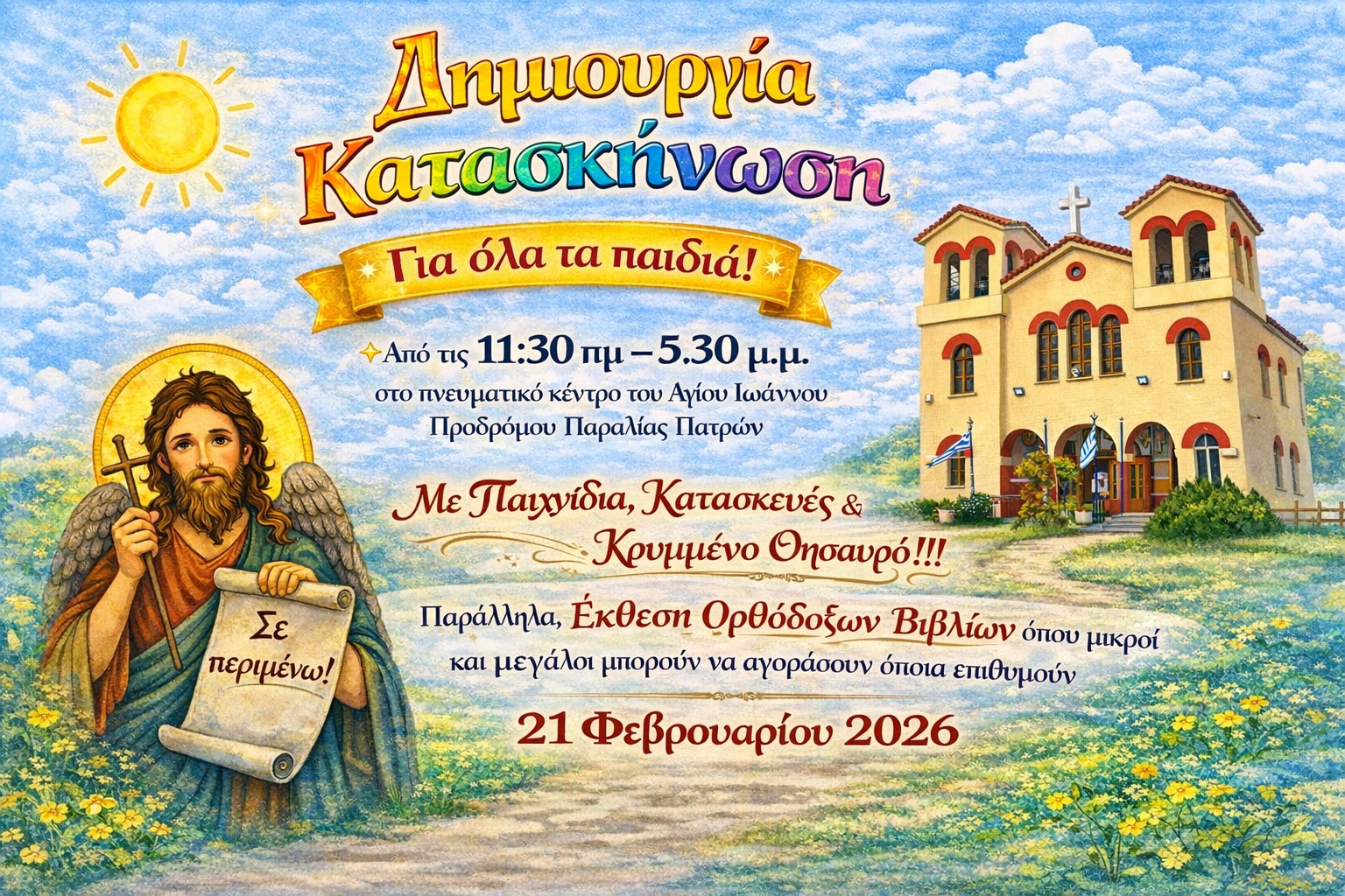 Ο Ιερός Ναός Αγίου Ιωάννου Προδρόμου Παραλίας Πατρών με χαρά προσκαλεί όλα τα παιδιά σε μια όμορφη[…]