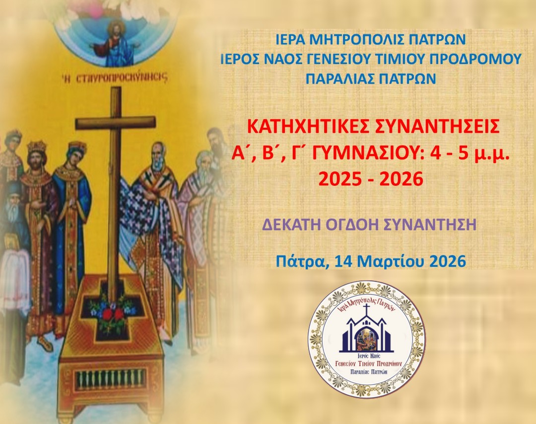 ΙΕΡΟΣ ΝΑΟΣ ΓΕΝΕΣΙΟΥ ΤΙΜΙΟΥ ΠΡΟΔΡΟΜΟΥ ΠΑΡΑΛΙΑΣ -ΙΕΡΑΣ ΜΗΤΡΟΠΟΛΕΩΣ ΠΑΤΡΩΝ Το μάθημα μας γίνεται κάθε Σάββατο 4-5 μ.μ.[…]