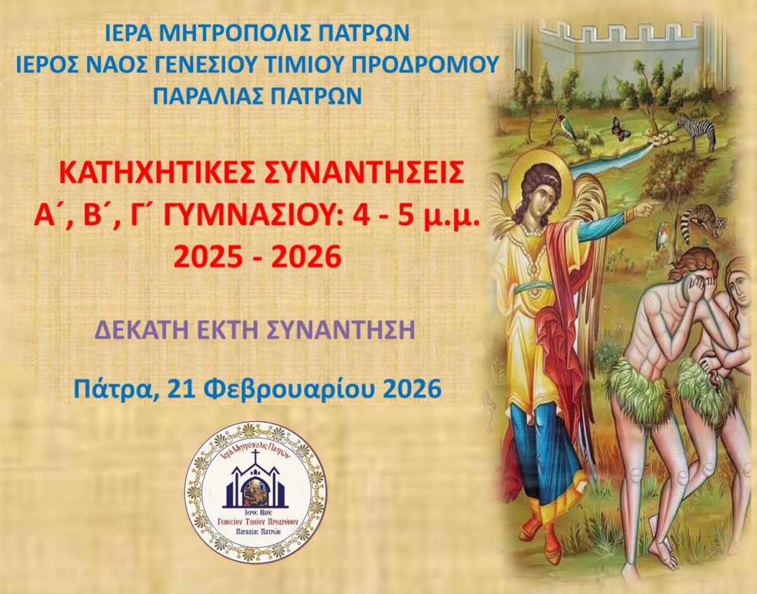 ΙΕΡΟΣ ΝΑΟΣ ΓΕΝΕΣΙΟΥ ΤΙΜΙΟΥ ΠΡΟΔΡΟΜΟΥ ΠΑΡΑΛΙΑΣ ΠΑΤΡΩΝ – ΙΕΡΑΣ ΜΗΤΡΟΠΟΛΕΩΣ ΠΑΤΡΩΝ ΕΛΑ ΚΑΙ ΕΣΥ ΣΤΗΝ ΚΑΤΗΧΗΤΙΚΗ ΜΑΣ[…]